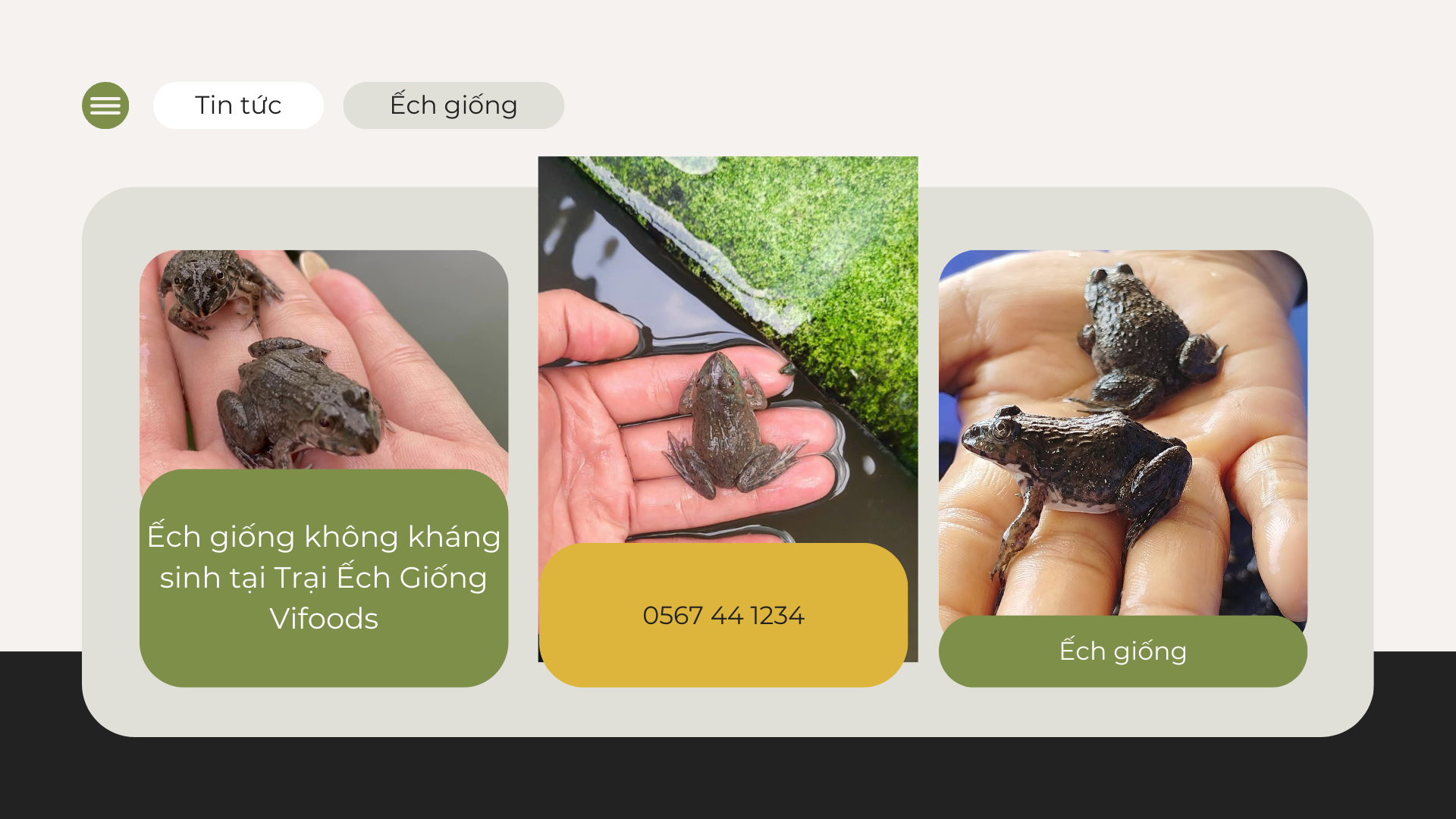 Chúng tôi đặt sự uy tín lên hàng đầu, cùng bà con phát triển và làm giàu từ con ếch. Ngoài ra khi bà con mua ếch giống tại cơ sở chúng tôi sẽ được hỗ trợ về kiến thức và cách thức chăm sóc ếch giống nhằm đạt hiệu quả tối ưu. Để báo giá và đặt mua ếch giống bà con đừng ngần ngại liên hệ với chúng tôi qua sđt/zalo 0567 44 1234 để được hỗ trợ nhanh nhất nhé.
